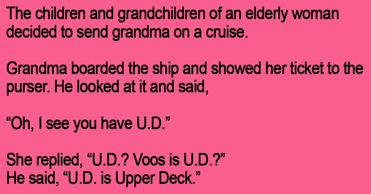 The children and grandchildren of an elderly woman decided to send grandma on a cruise.