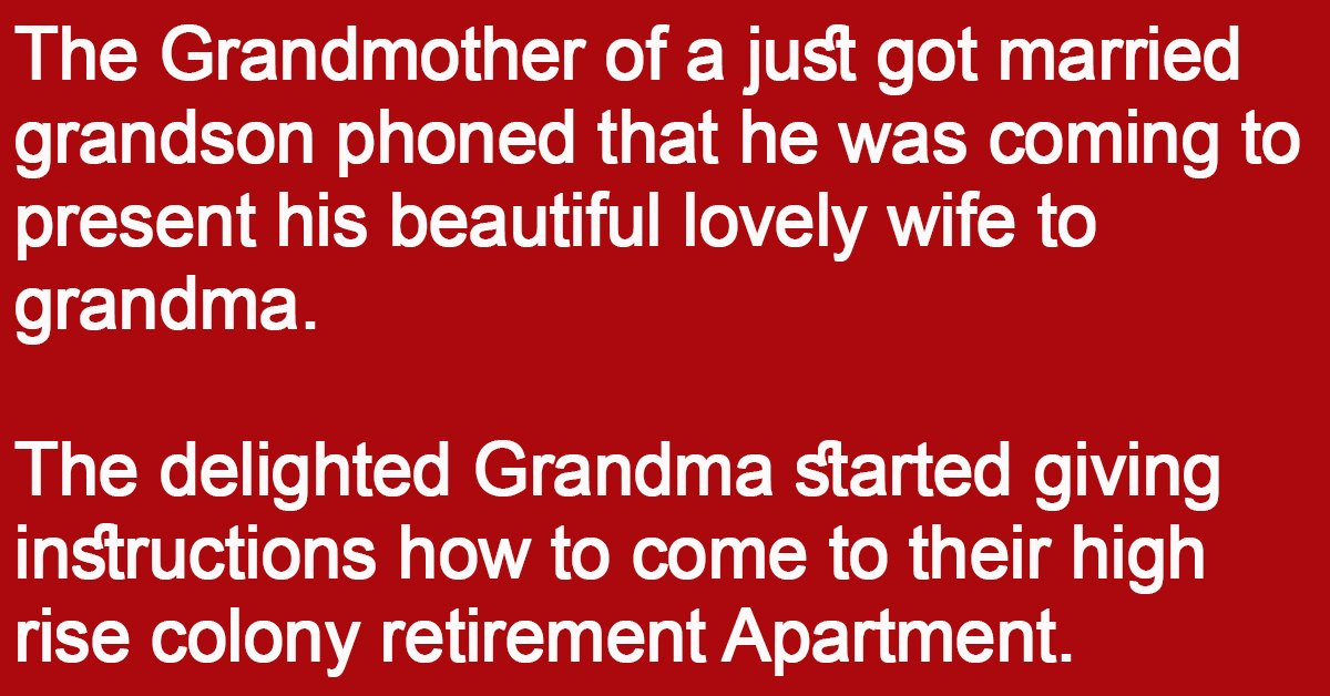 The Grandmother of a just got married grandson phoned that he was coming to present his beautiful lovely wife to grandma.