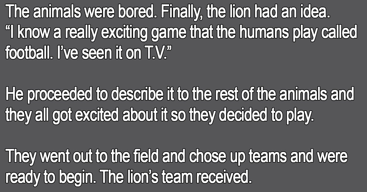 Late in the first half the lion’s team scored a touchdown and the mule kicked the extra point.