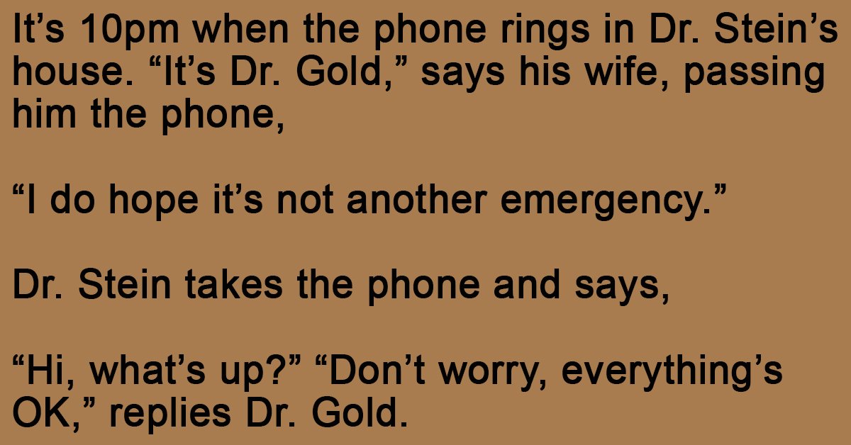 It’s 10pm when the phone rings in Dr. Stein’s house.