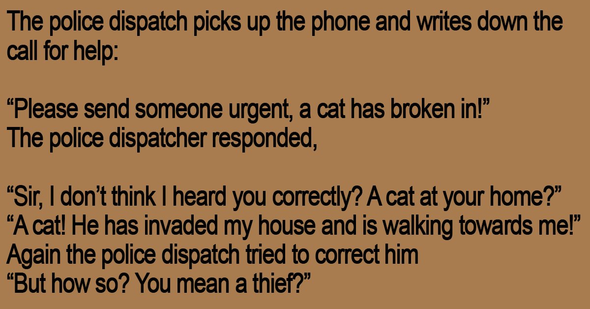 “Please send someone urgent, a cat has broken in!”