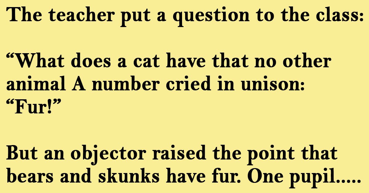 But an objector raised the point that bears and skunks have fur. One pupil raised an eager hand: