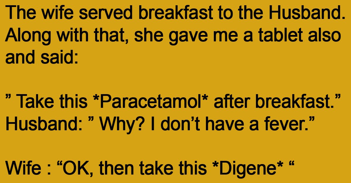 Husband : “Come on ! I don’t have even gastric trouble.”