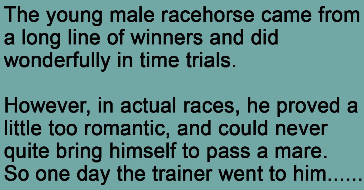 However, in actual races, he proved a little too romantic, and could never quite bring himself to pass a mare.