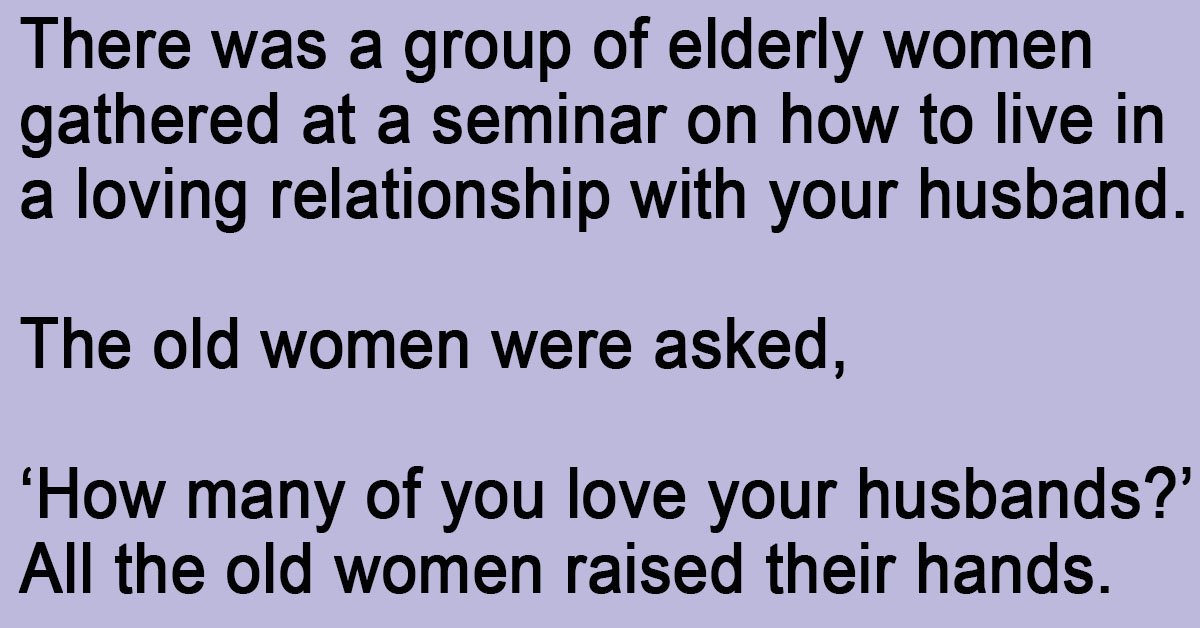 There was a group of elderly women gathered at a seminar on how to live in a loving relationship with your husband.