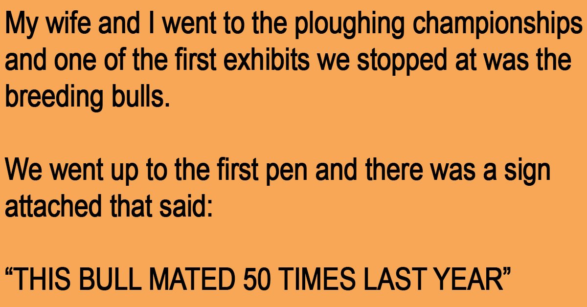 My wife playfully nudged me in the ribs Smiled and said, ‘He mated 50 times last year.’
