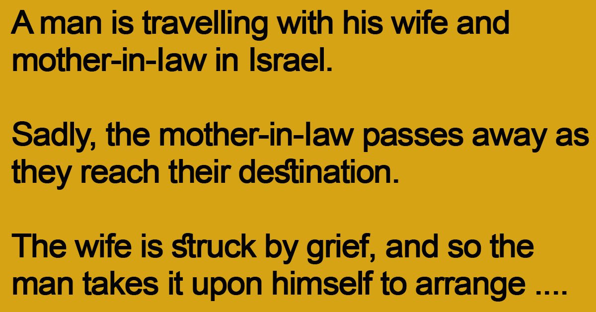 A man is travelling with his wife and mother-in-Iaw in Israel.