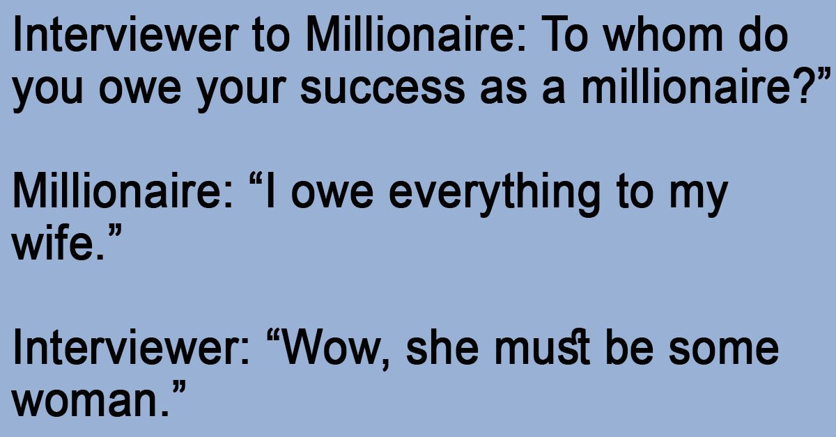 Interviewer to Millionaire: To whom do you owe your success as a millionaire?”