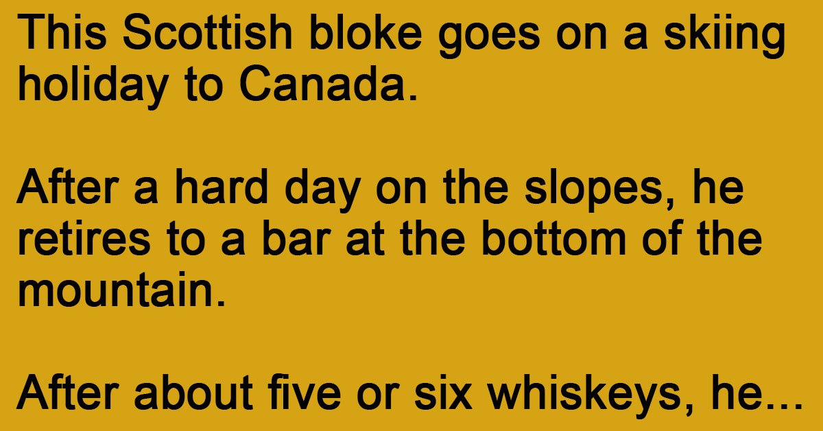 After a hard day on the slopes, he retires to a bar at the bottom of the mountain.