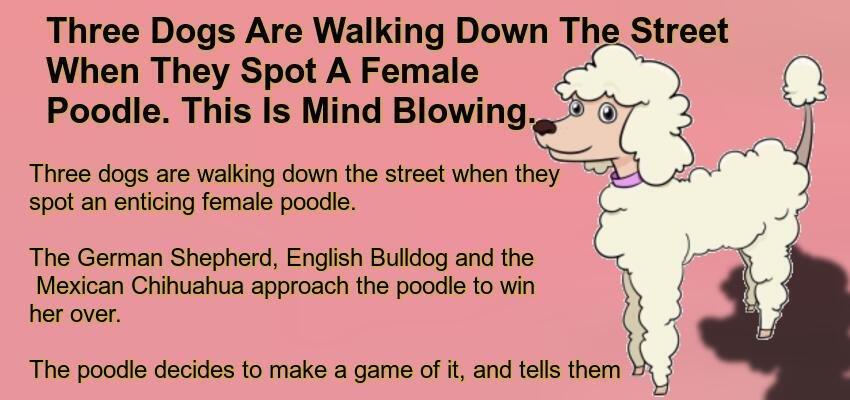 Three Dogs Are Walking Down The Street When They Spot A Female Poodle. –