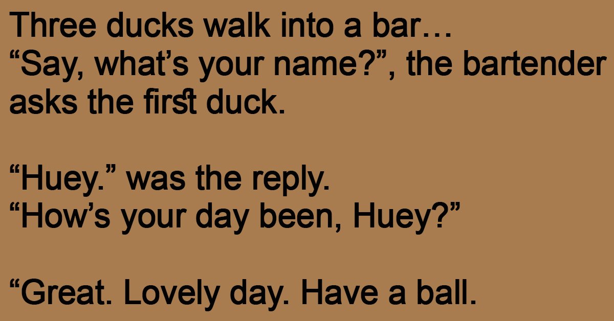 “Say, what’s your name?”, the bartender asks the first duck.