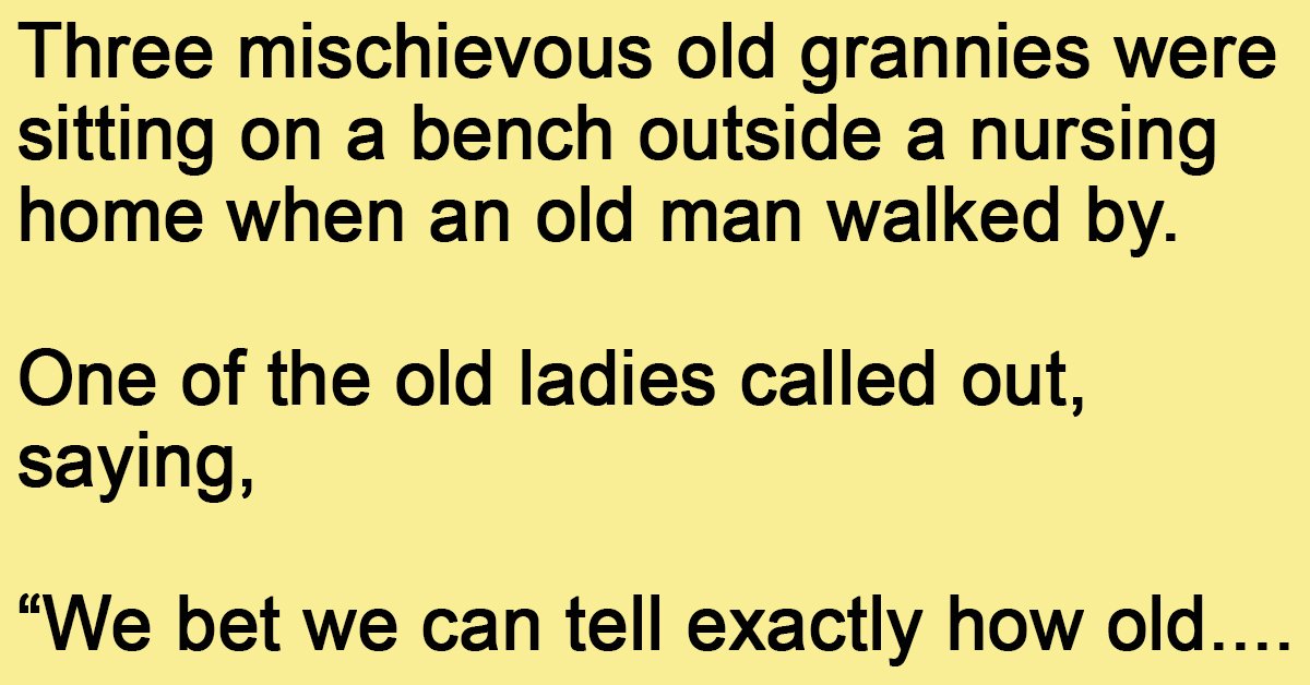 Three mischievous old grannies were sitting on a bench outside a nursing home when an old man walked by.