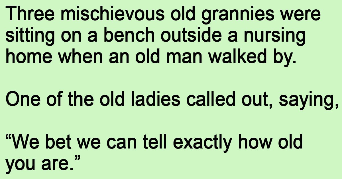 Three mischievous old grannies were sitting on a bench outside a nursing home when an old man walked by.