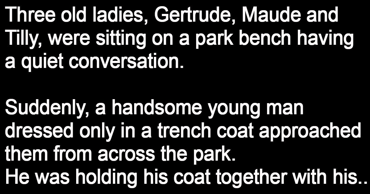 Three old ladies, Gertrude, Maude and Tilly, were sitting on a park bench having a quiet conversation.