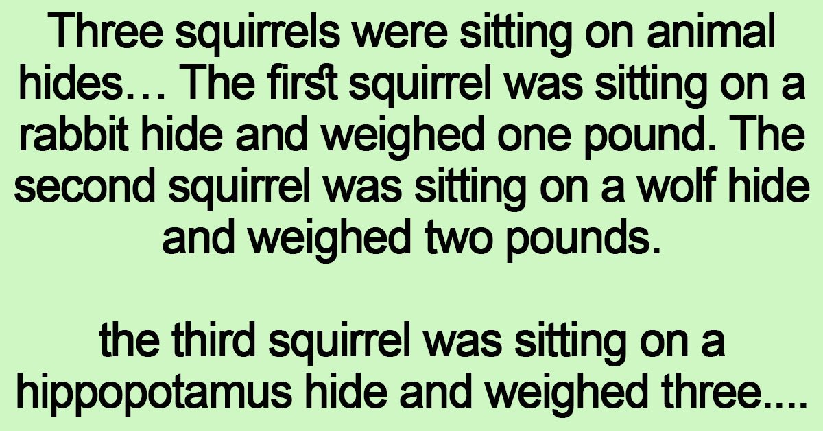the third squirrel was sitting on a hippopotamus hide and weighed three pounds.