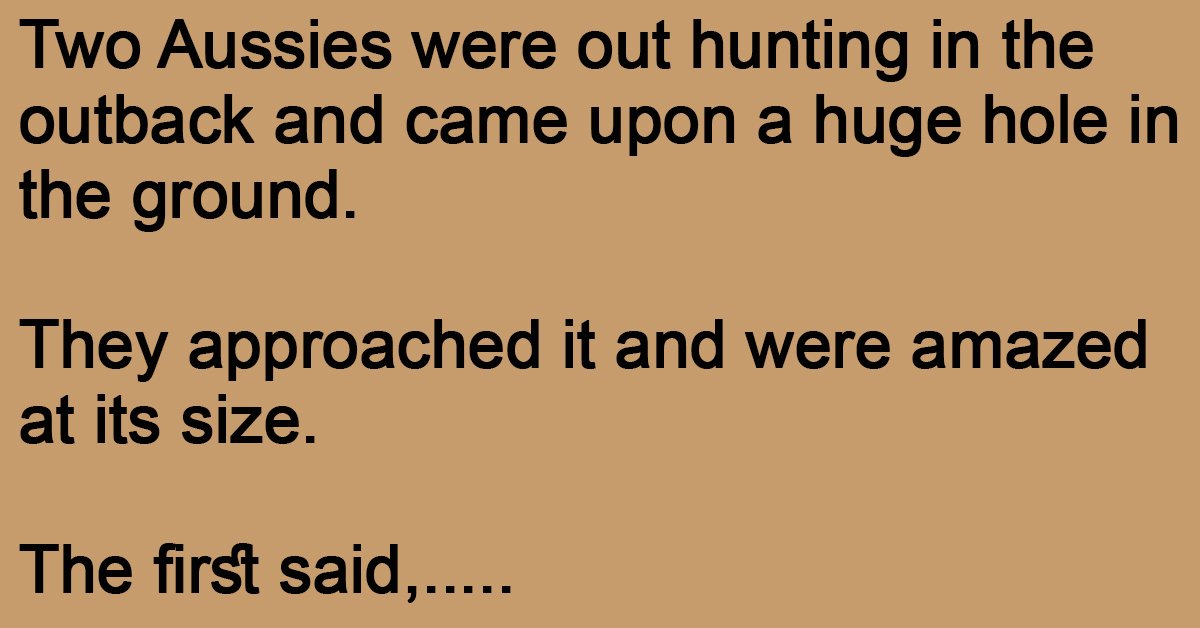 Two Aussies were out hunting in the outback and came upon a huge hole in the ground.