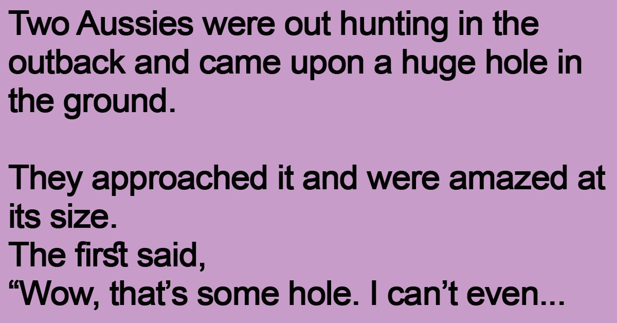 Two Aussies were out hunting in the outback and came upon a huge hole in the ground.