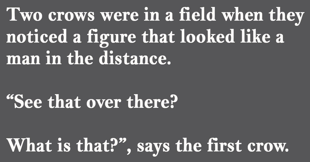 “How can you tell it’s a scarecrow and not a person?”, replies the first crow.