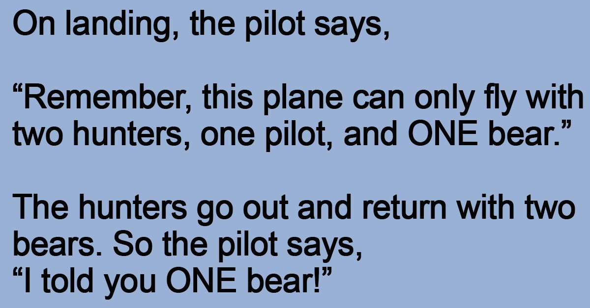 “Remember, this plane can only fly with two hunters, one pilot, and ONE bear.”