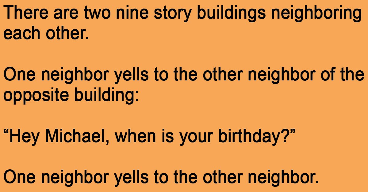 “Hey Michael, when is your birthday?” One neighbor yells to the other neighbor.