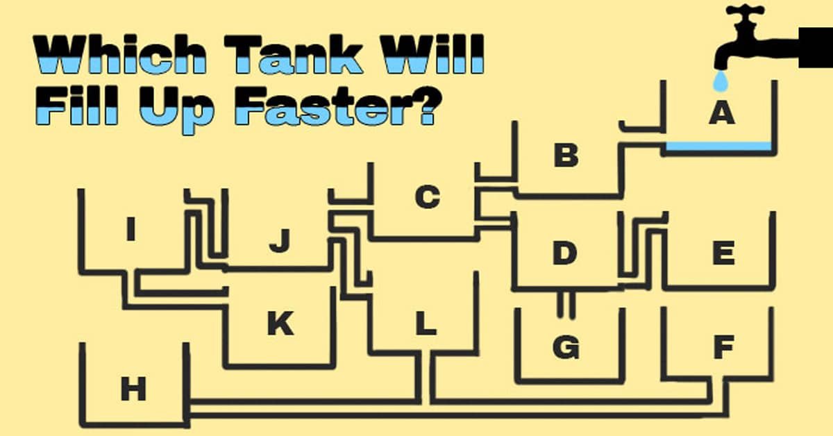 Okay, here’s the trick. I and K are out. Why? Because water will move to where there’s least resistance. J will remain level until the pressure is greater than a full container.