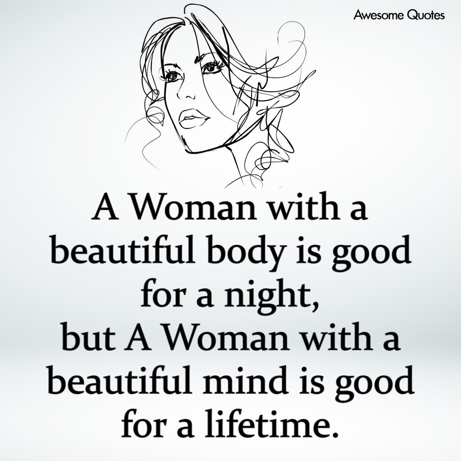 A Woman with a beautiful body is good for a night, but A Woman with a beautiful mind is good for a lifetime.